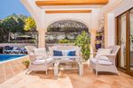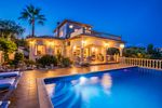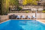 Disponible por 3 meses. Amplia villa, hay 4 dormitorios y 3,5 baños, salón con chimenea, comedor independiente que conduce a la terraza cubierta desde donde se puede admirar la piscina privada y los bonitos jardines, cocina totalmente equipada con lavadero independiente, varias terrazas en toda la casa, calefacción central de gas y aire acondicionado en todas partes, sala de cine, apartamento independiente en el nivel inferior, área de barbacoa exterior, parcela vallada segura con estacionamiento privado para 2 autos, ubicada a poca distancia en automóvil de todos los servicios. No se permiten mascotas, lo sentimos.